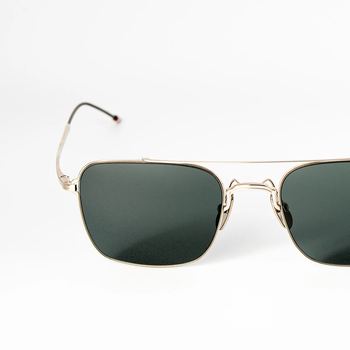 Gli occhiali Thom Browne 120 dalla montatura aviator in titanio sono l’accessorio perfetto per chi cerca artigianalità, cura ed eleganza in un occhiale per completare il proprio look.