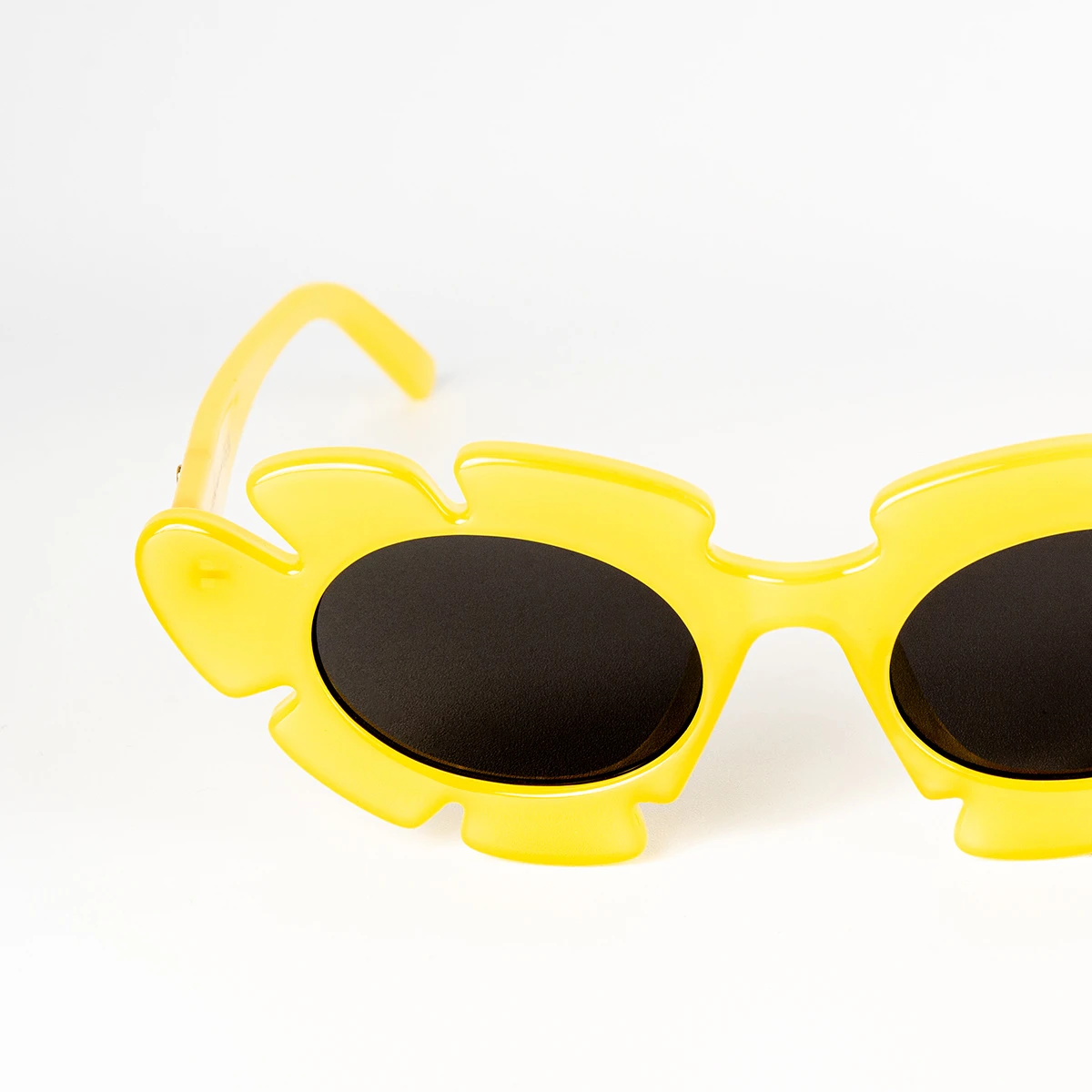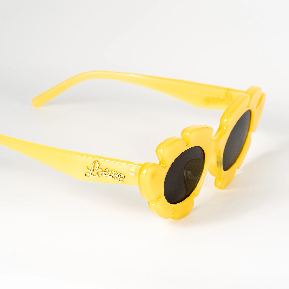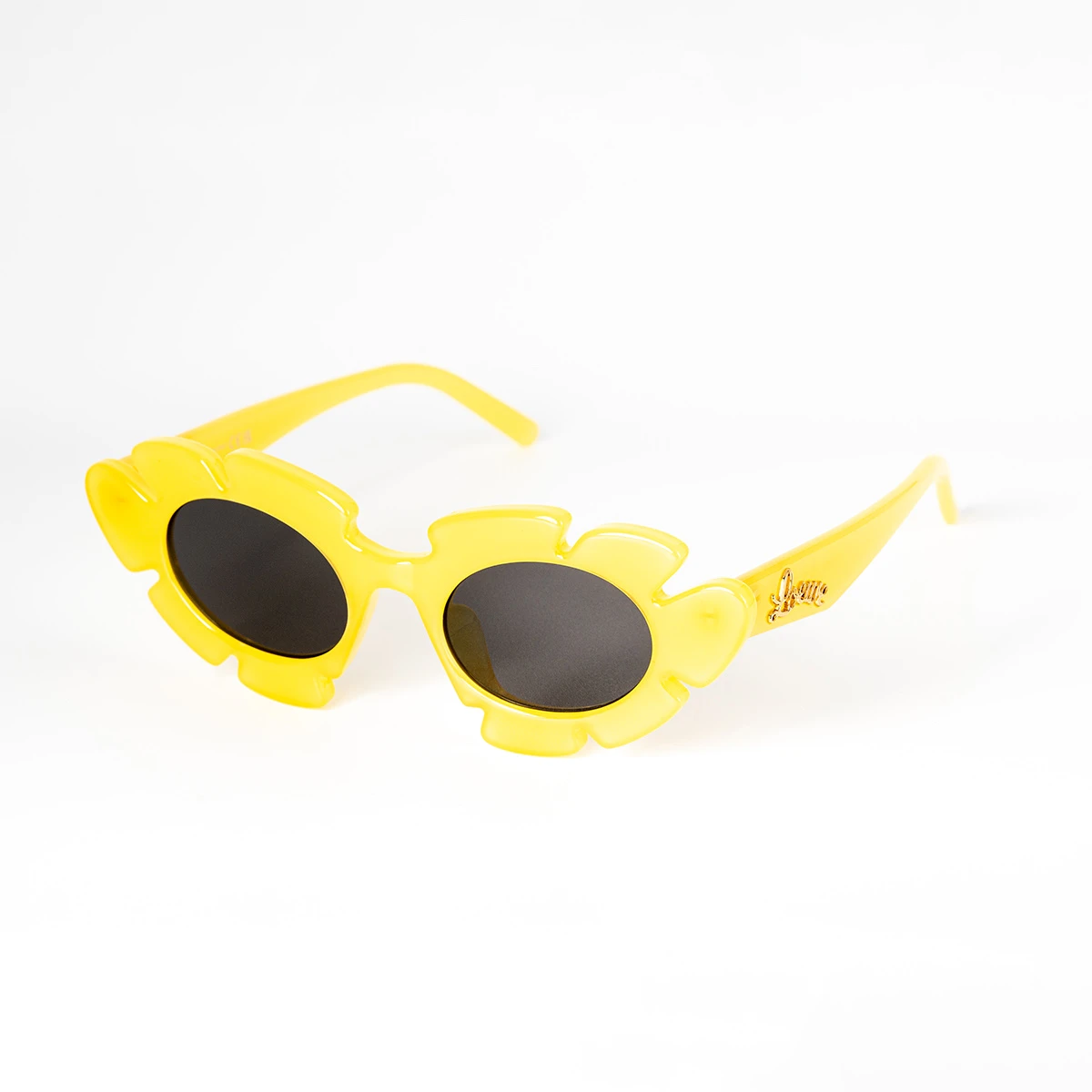 Questi occhiali da sole di Loewe dalla forma floreale sono l’accessorio perfetto per chi non vuole passare inosservato. La montatura giallo acido presenta lenti grigie che ti proteggeranno al 100% dai raggi UV. Le aste sono impreziosite dalla firma dorata Loewe e ciò conferisce a quest’occhiale un tocco di classe.