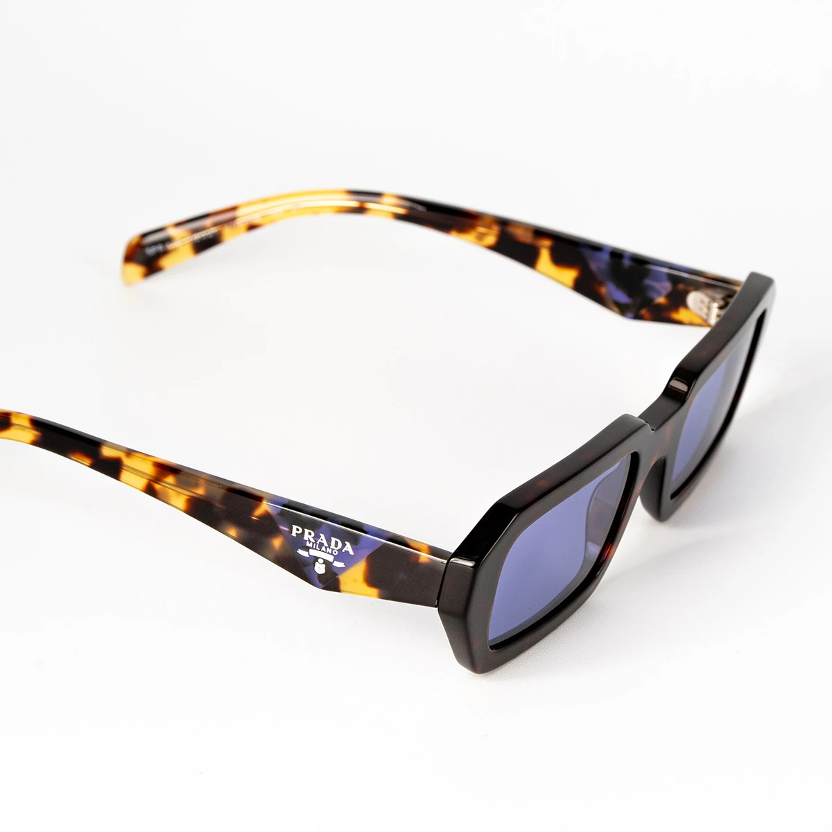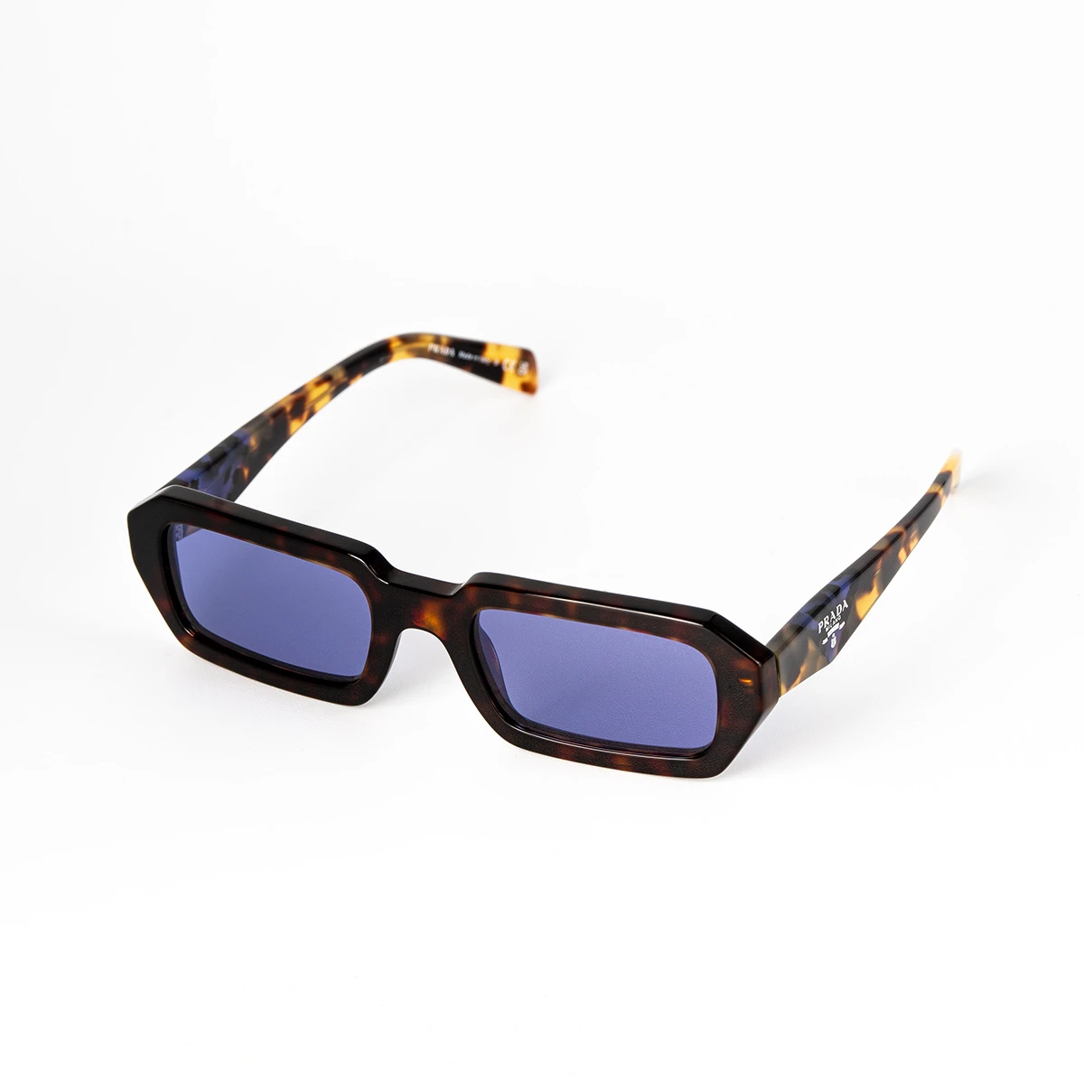 Occhiali da sole Prada con montatura rettangolare in acetato dal carattere moderno, audace e alla moda. Le aste sono contraddistinte dal logo triangolare della maison.