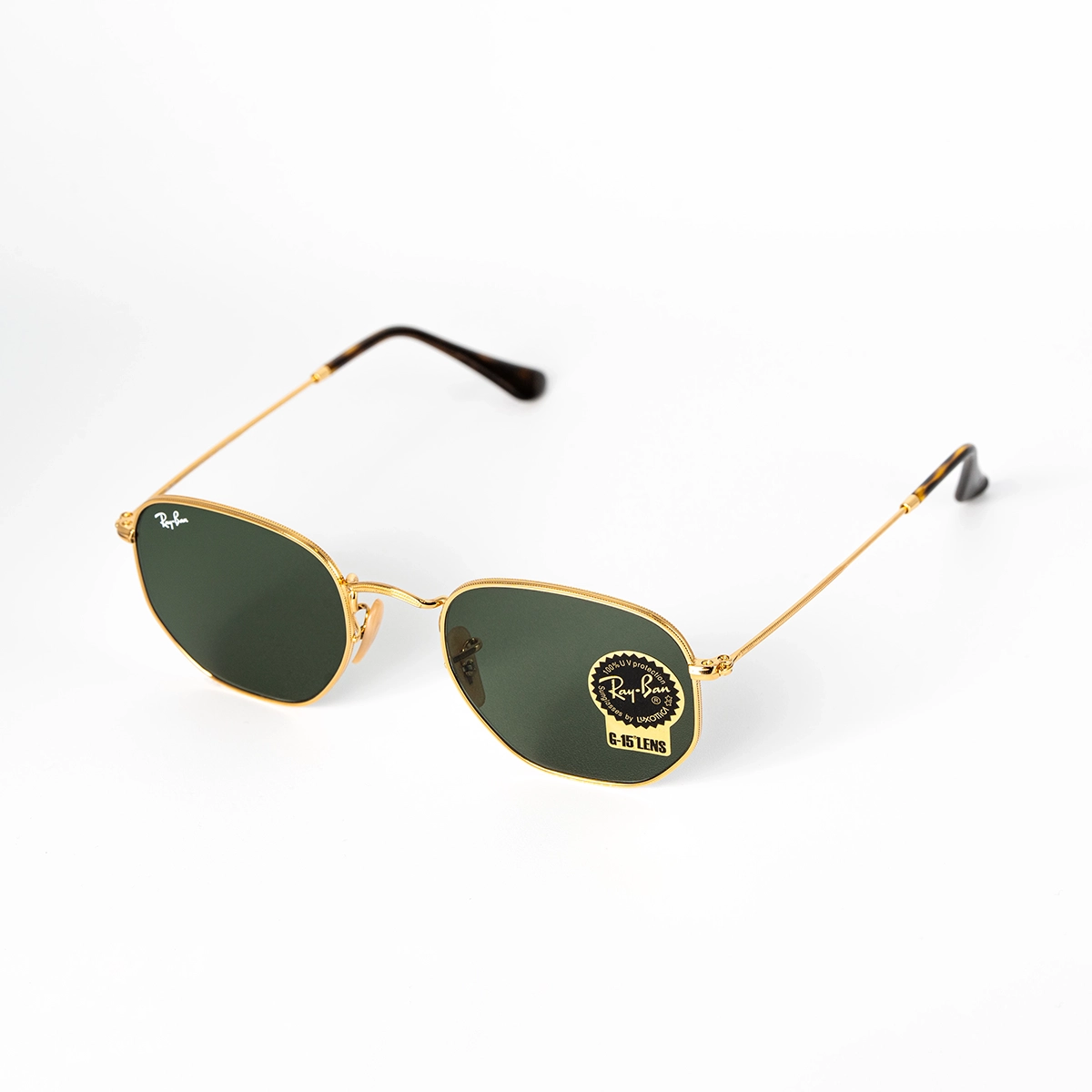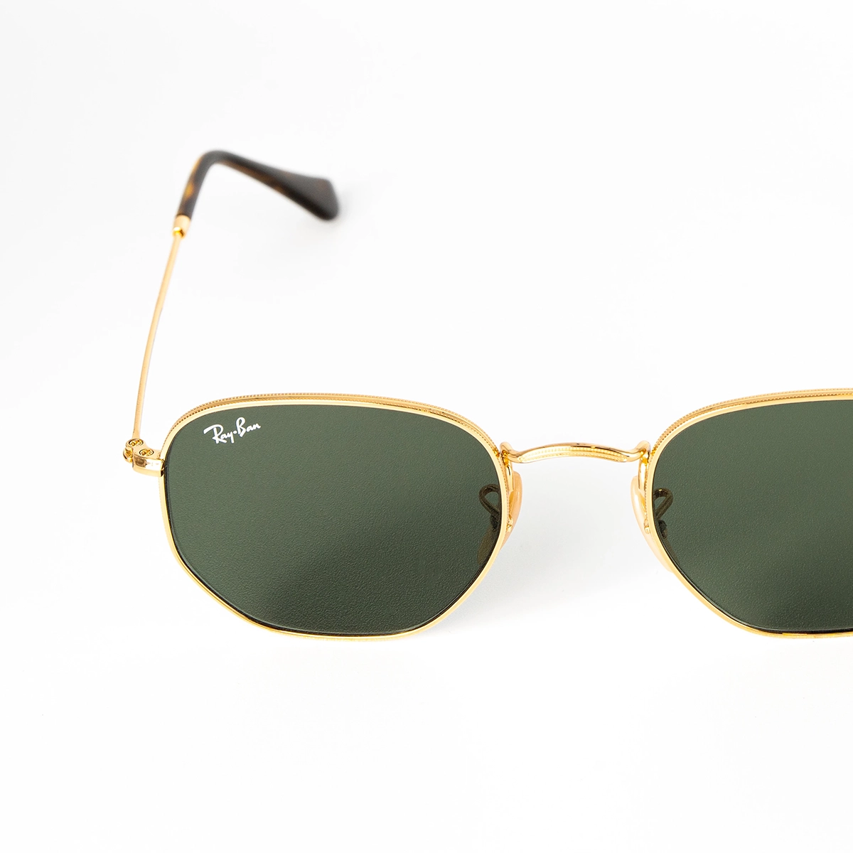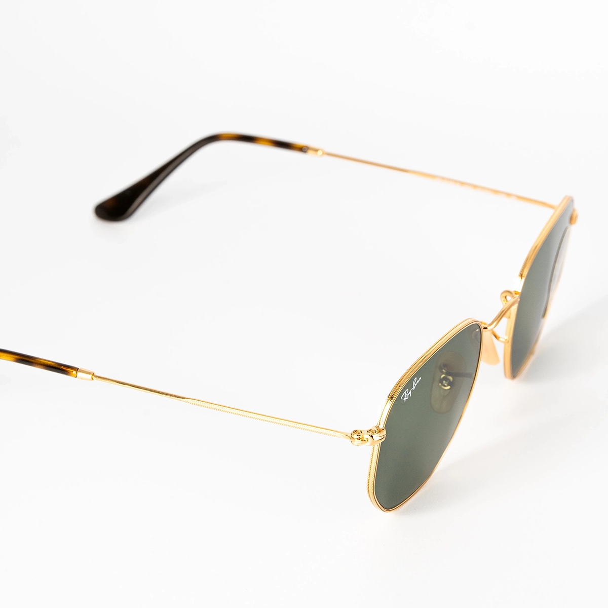 Gli occhiali da sole Ray-Ban Hexagonal Flat Lenses con il loro stile geometrico sono moderni e accattivanti. La montatura color oro di questo occhiale è realizzata in metallo per uno stile che durerà nel tempo. Le lenti piatte verdi offrono una protezione totale dai raggi uv, garantendo una visione nitida e confortevole.