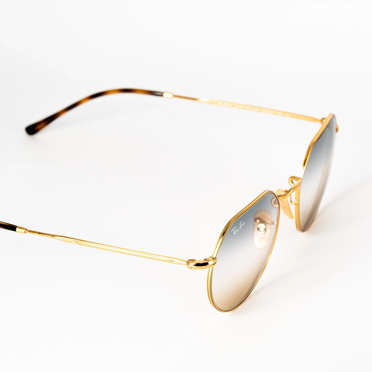 Gli occhiali da sole Ray-Ban Jack con il loro stile né rotondo né spigoloso sono proprio arrotondati e alla moda. La montatura color oro di questo occhiale è realizzata in metallo per uno stile che durerà nel tempo. Le lenti blu e marrone offrono una protezione totale dai raggi uv, garantendo una visione nitida e confortevole.