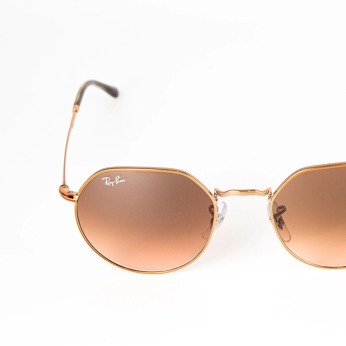 Gli occhiali da sole Ray-Ban Jack con il loro stile ne rotondo ne spigoloso sono proprio arrotondati e alla moda. La montatura color rame di questo occhiale è realizzata in metallo per uno stile che durerà nel tempo. Le lenti marrone sfumate rosa offrono una protezione totale dai raggi uv, garantendo una visione nitida e confortevole.