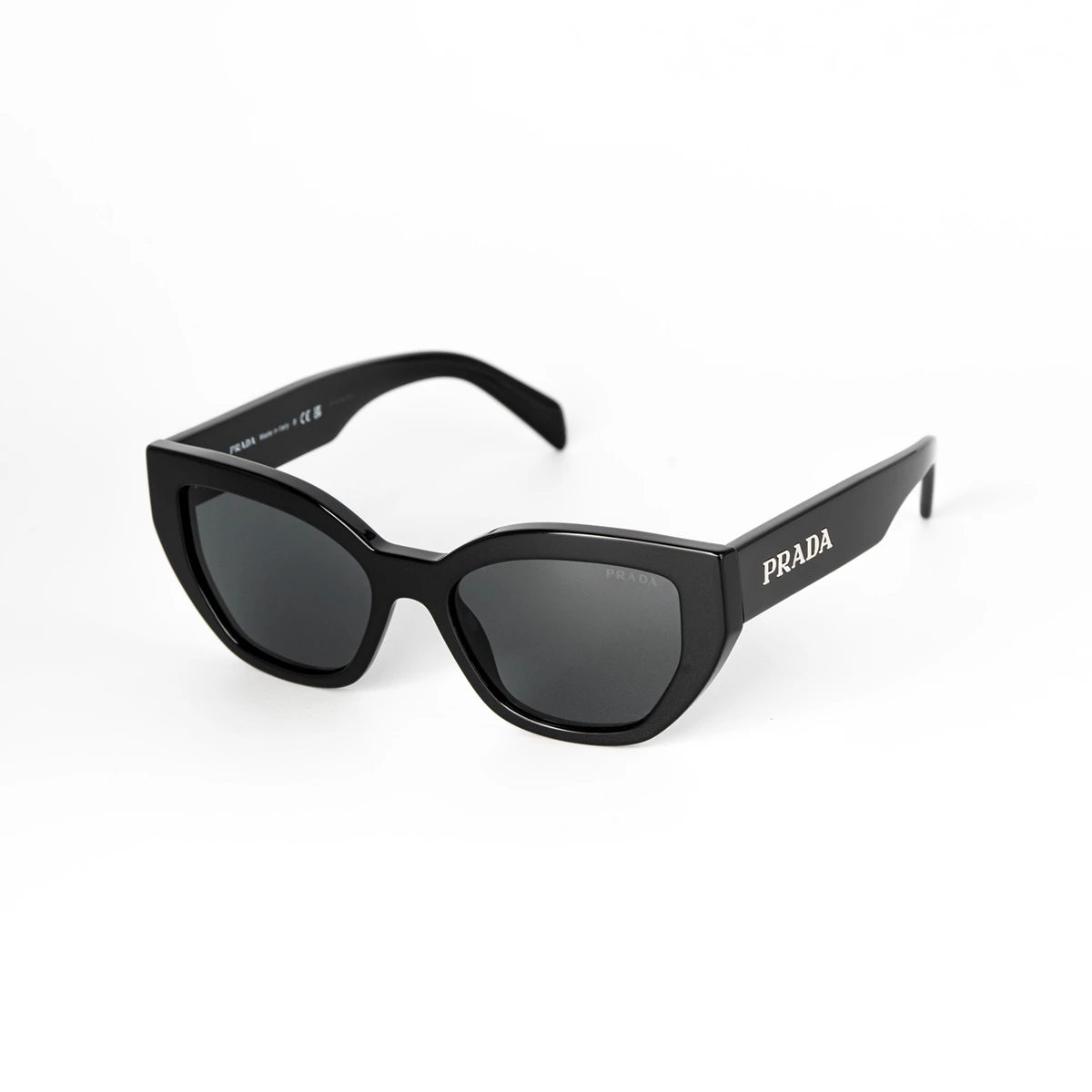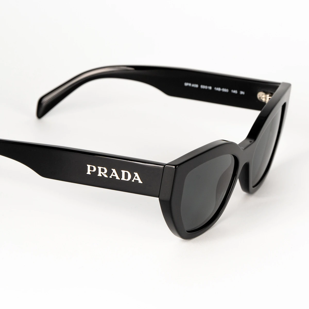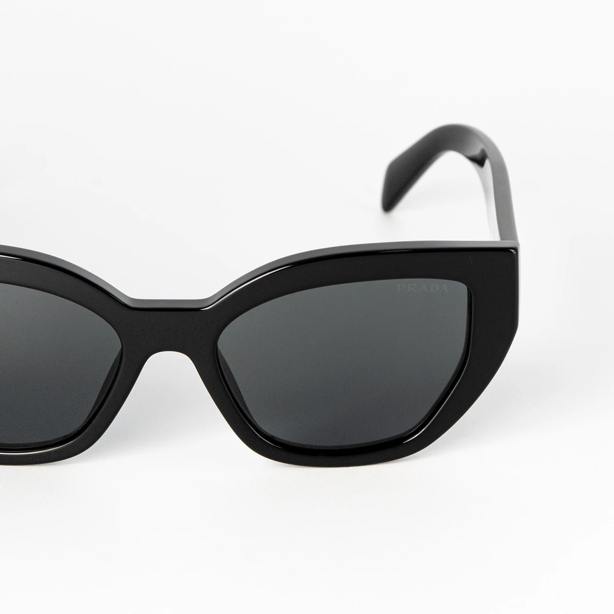 Occhiali da sole Prada con montatura a farfalla color nero in acetato dal carattere moderno, audace e alla moda, per chi non ha paura di mostrare la propria personalità. Le lenti grigio scuro ti proteggeranno dai pericolosi raggi UV. Le aste sono contraddistinte dal logo della maison.