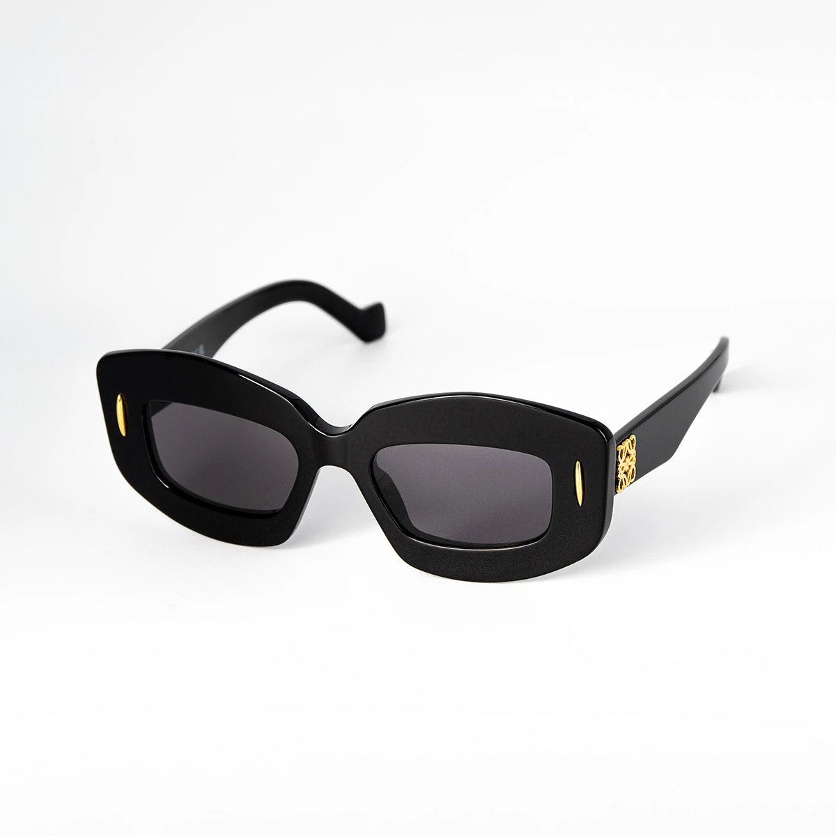 Questi occhiali da sole di Loewe dalla forma rettangolare sono l’accessorio perfetto per chi vuole essere elegante e raffinato. La montatura color nero lucido presenta lenti grigie che ti proteggeranno al 100% dai raggi UV. Le aste sono impreziosite dall’iconico Anagram dorato di Loewe e ciò conferisce a quest’occhiale un tocco di classe.