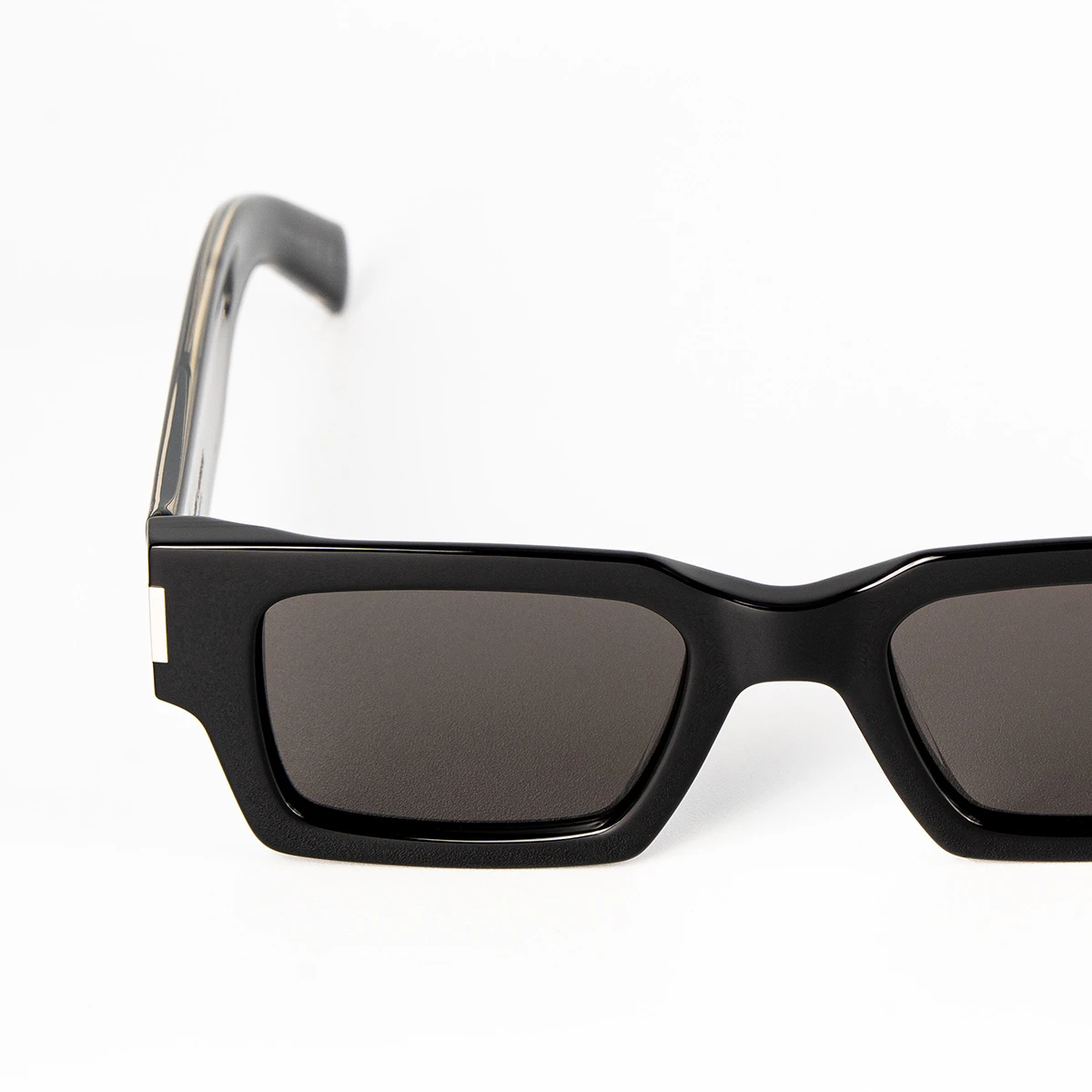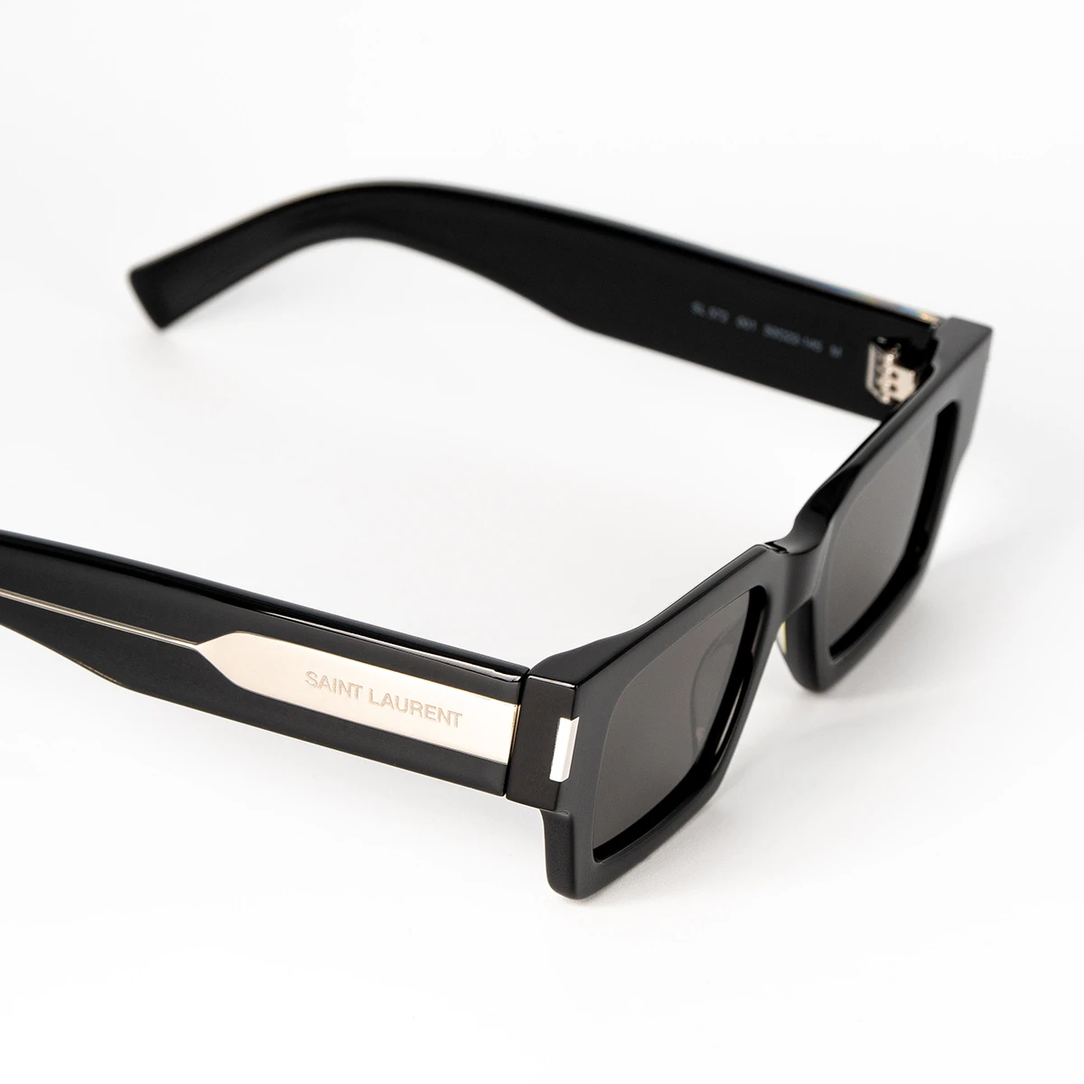 Gli occhiali da sole SL 572 di Saint Laurent sono l’emblema del nuovo concept di questa stagione dal nome naked wirecore. Questi occhiali dalla forma squadrata hanno la peculiarità di mostrare l’anima in metallo delle aste su cui è presente il logo della Maison su finitura lucida. La montatura color nero lucido presenta delle lenti color grigio che ti proteggeranno al 100% dai raggi UV.